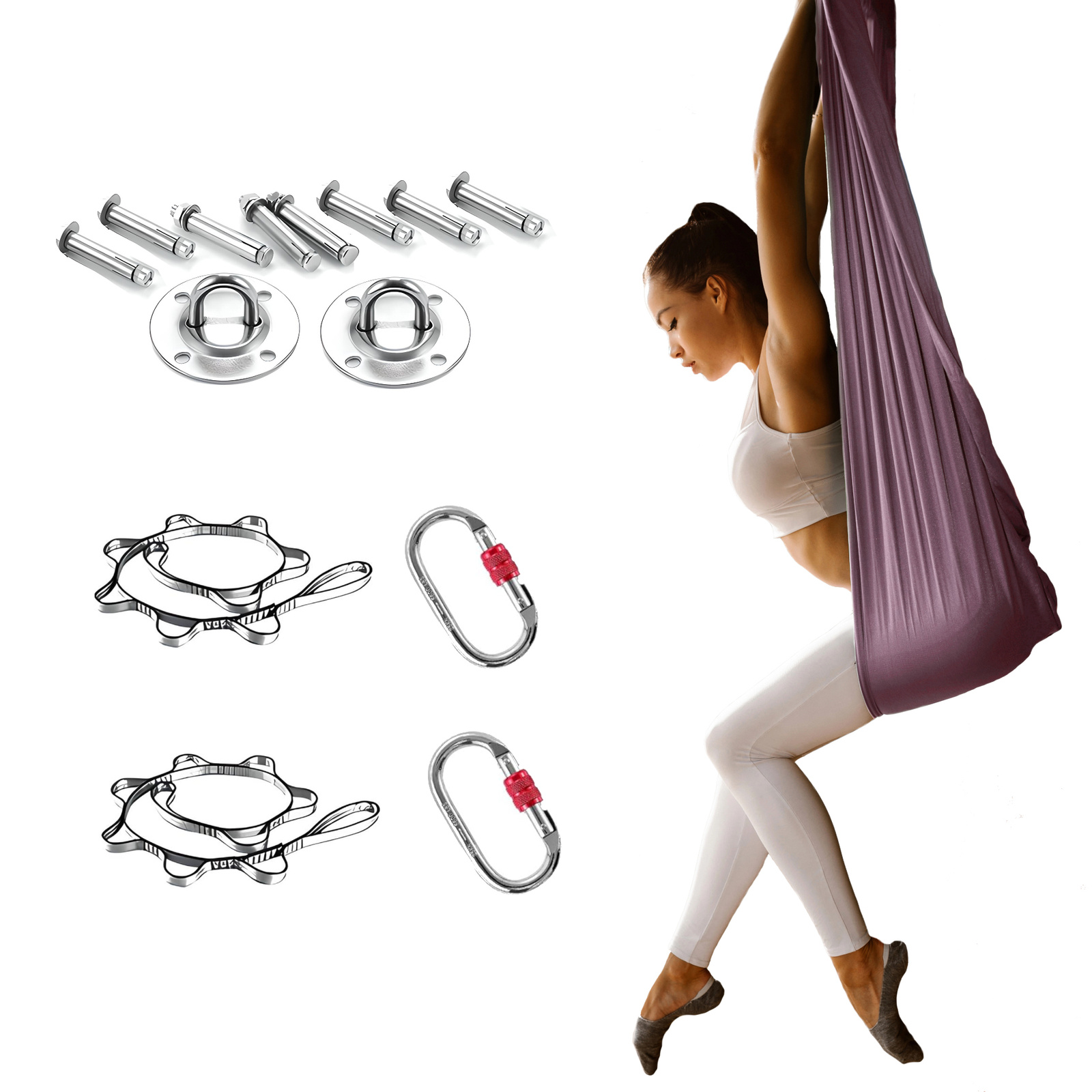 Na hamaku do jogi możesz wykonywać powietrzne akrobacje, trenować jogę, ale także zaszyć się w domowym zaciszu i odpoczywać. Zestaw jest gotowy do zawieszenia w mieszkaniu lub studio, zawiera wszystkie niezbędne elementy potrzebne do mocowania hamaka do sufitu lub belki.