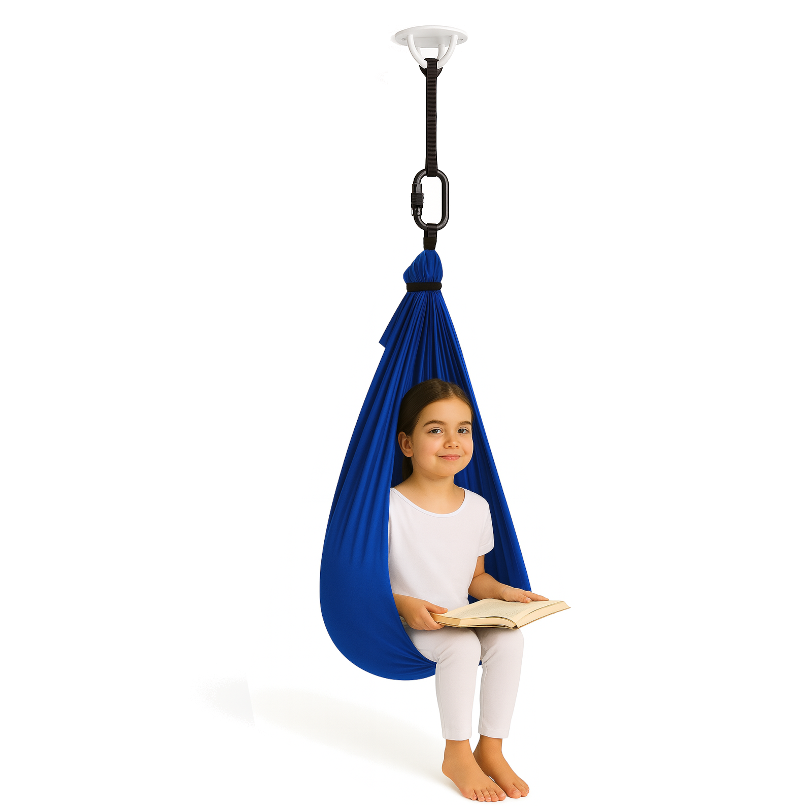 • W zestawie chusta, 2 taśmy, karabińczyk, mocowanie sufitowe, kotwy z zaślepkami.