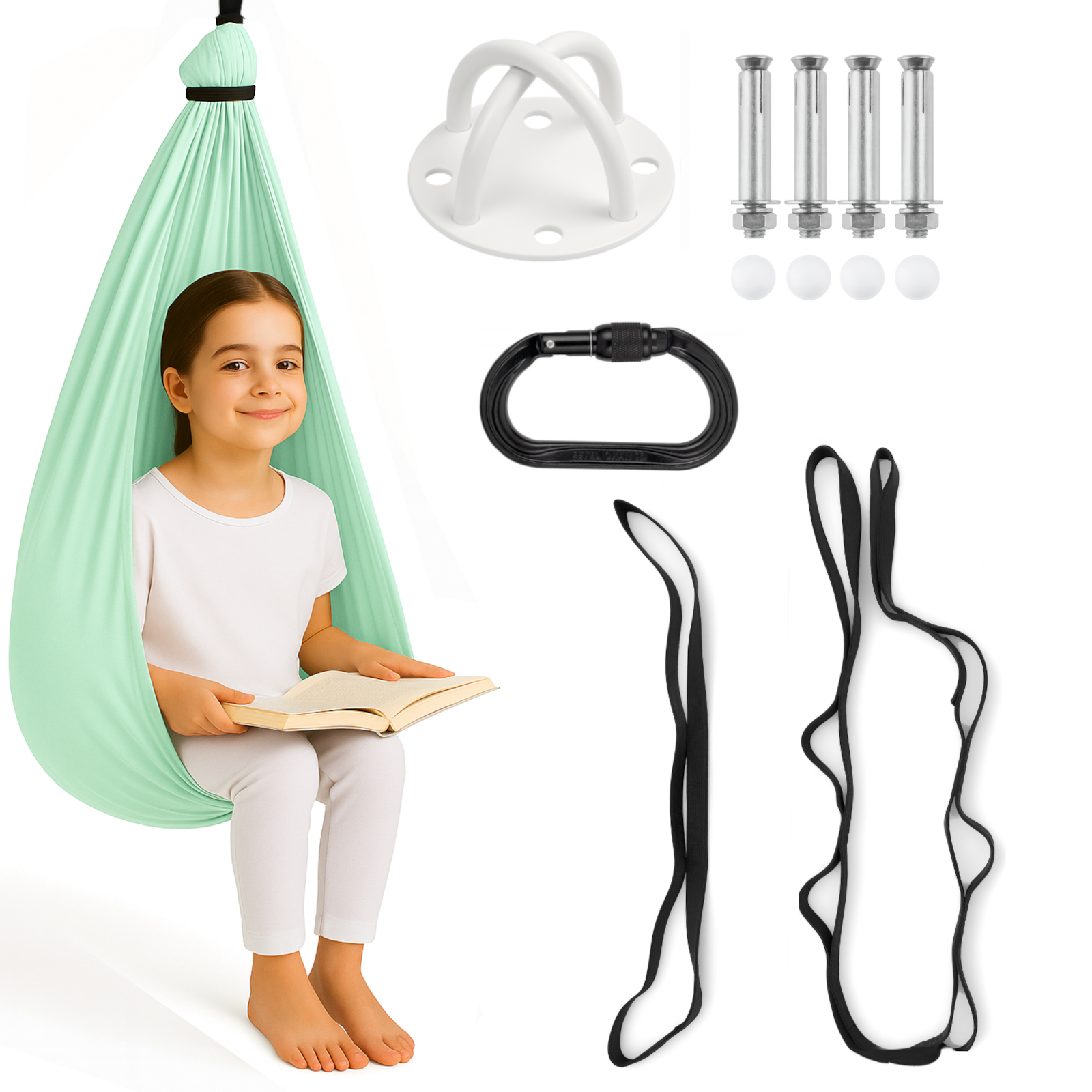 Wsparcie integracji sensorycznej - delikatne otulenie i kołysanie działa kojąco, redukuje stres i pomaga wyciszyć emocje, co jest szczególnie ważne dla dzieci z nadwrażliwościami sensorycznymi (np. w spektrum autyzmu, ADHD).