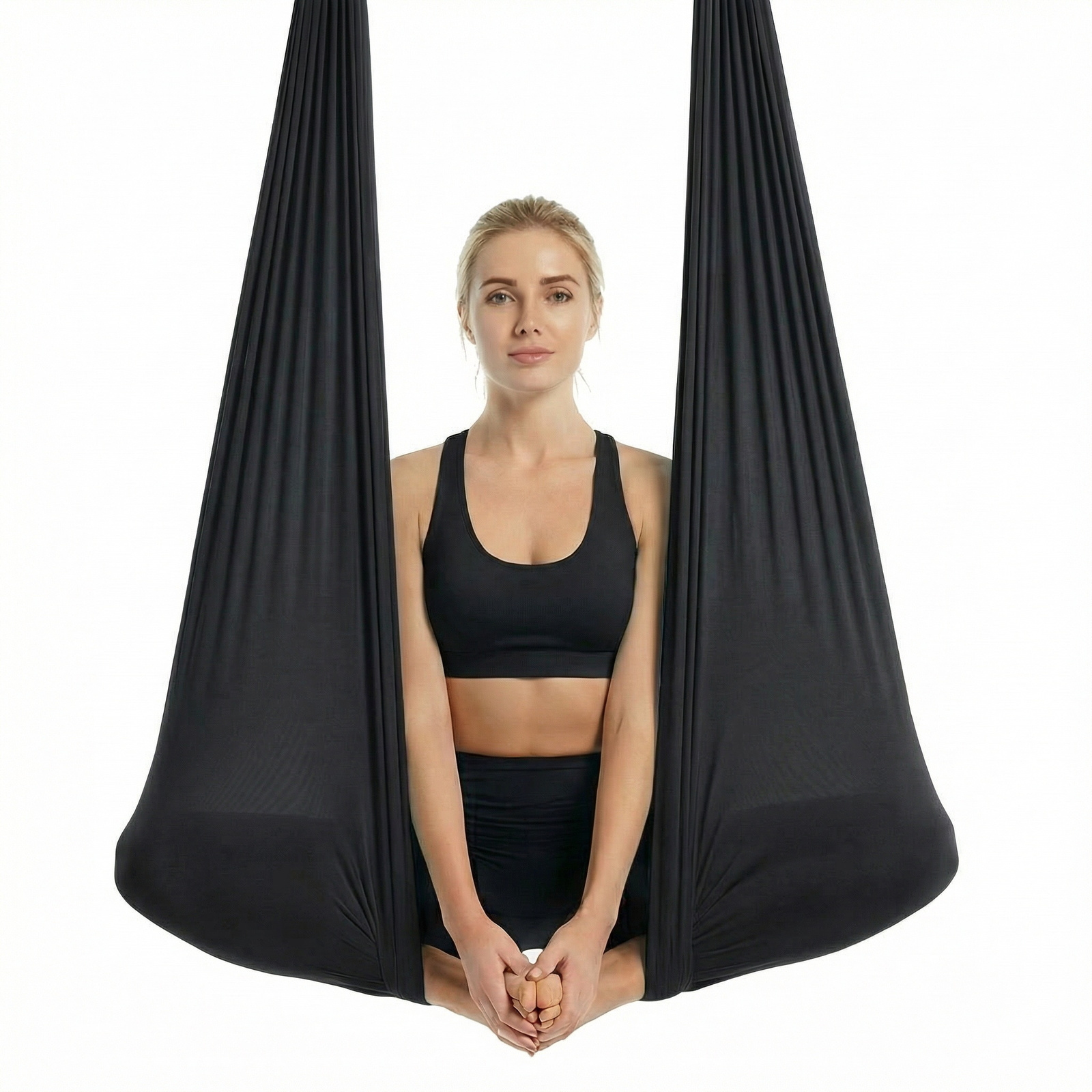 Hamak do jogi w powietrzu oraz do ćwiczeń czy relaksu w domowej przestrzeni lub w ulubionym miejscu na świeżym powietrzu. Nie znajdziesz lepszego narzędzia do wzmacniania i rozciągania swojego ciała w domu lub podróży.