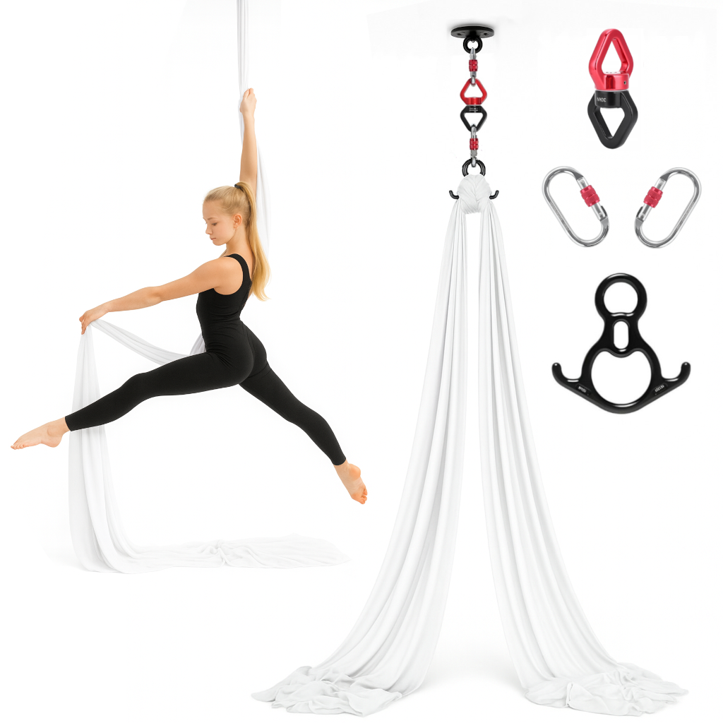 Nasze szarfy to idealny wybór zarówno dla amatorów jak i profesjonalnych akrobatów. Wykonane z wysokiej jakości materiałów, które zapewnią Ci wyjątkową przyczepność oraz płynność ruchu. Dzięki naszej szarfie aerial silk wykonywanie trudnych do tej pory akrobacji stanie się przyjemniejsze i łatwiejsze. Zestaw posiada niezbędne elementy do stworzenia profesjonalnego układu do akrobacji.