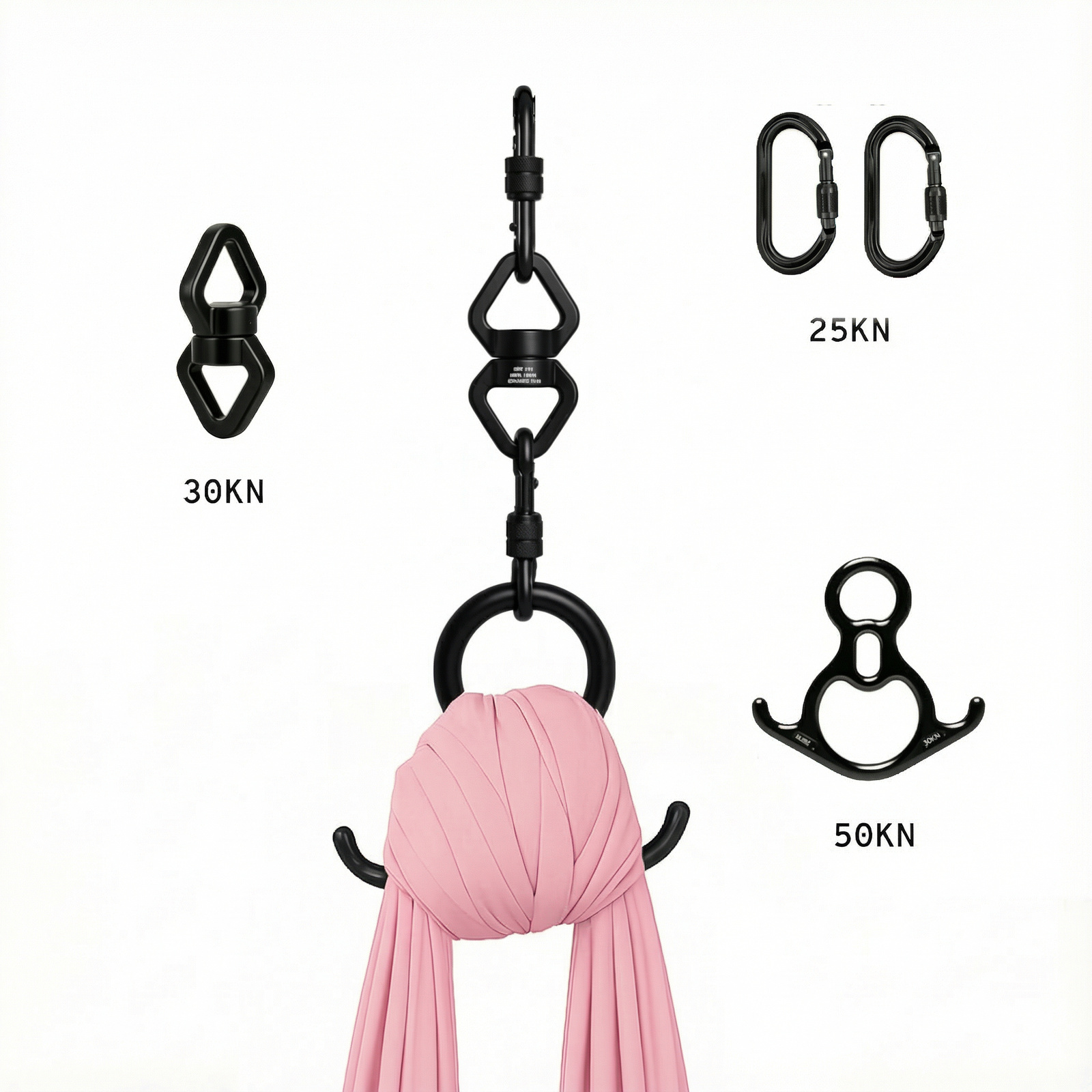 • W zestawie: krętlik, 2 szt. karabinek i ósemka.